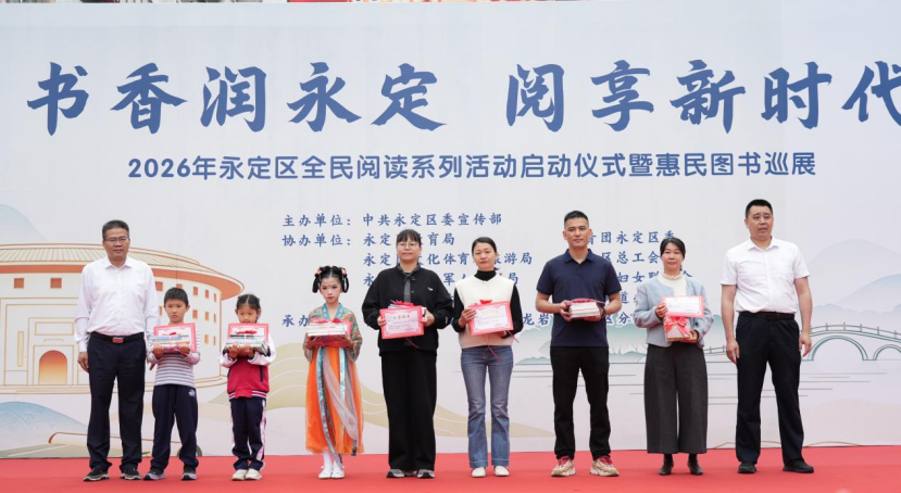 现场集中展示了教育“大阅读”成果;《土楼回响》《将进酒》《红土书香 军魂永续》……经典颂读传递了阅读力量;主办方还为2名阅读典型代表、5名校园阅读之星及20名优秀伴读家长颁发证书与书籍,以书香激励成长。