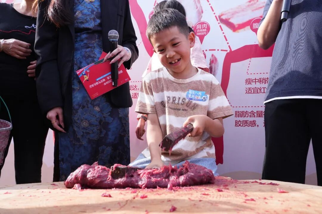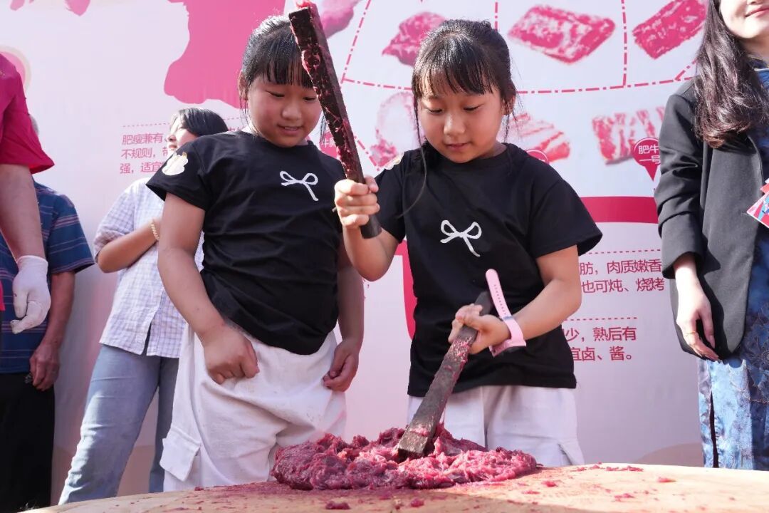 活动当天,刨牛、分割、烹饪新鲜牛肉的场景轮番上演。庖丁解牛技艺展示精彩上演,老师傅现场刨牛、精细分割鲜牛,讲解各部位最佳吃法;非遗手打牛肉丸现场捶打,师傅们挥臂快捶,新鲜牛肉瞬间化作Q弹丸子,市民热情参与,沉浸式感受非遗魅力。