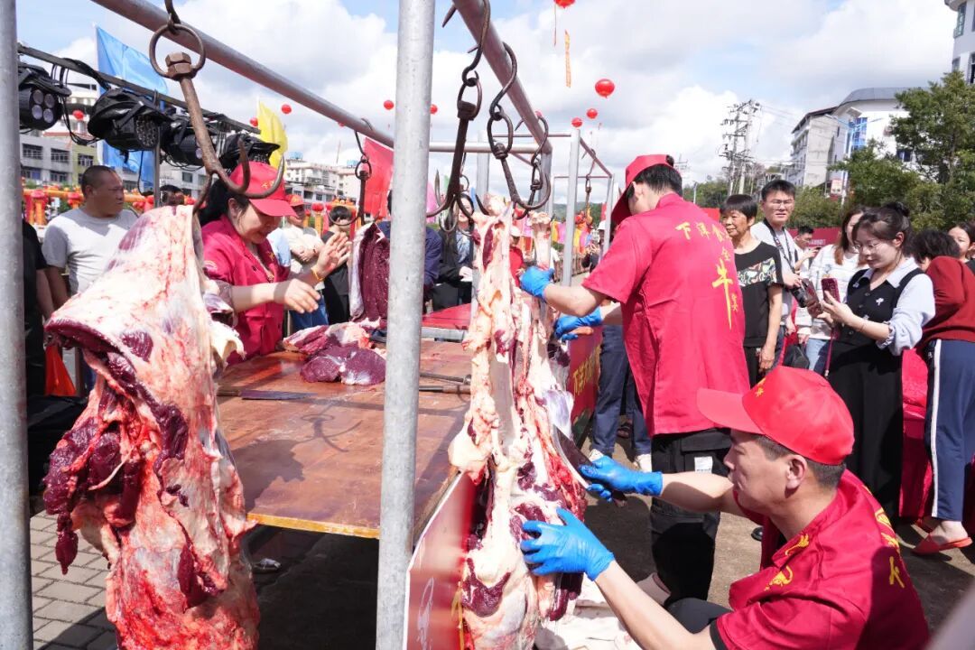 新鲜牛肉现切现煮、现做现尝,香气弥漫整个广场,食客围坐桌边,现场大快朵颐地吃牛肉。同时,50桌限定全牛宴限量预约,15 道招牌牛菜齐上桌,搭配客家开席仪式,尽显地道客家饮食文化;特色小吃市集全天候供应牛肉丸、牛肉鲜汤、石花膏等风味,农特产品一站式展销,牛肉休闲食品、泡鸭爪、客家辣酱等特色好物琳琅满目,让市民游客吃得尽兴、购得开心。