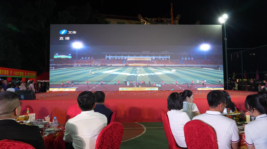 当晚,下洋镇观赛现场人头攒动、氛围热烈。高清大屏全程同步赛事直播,鲜艳队旗迎风招展,助威锣鼓铿锵作响。每当赛场上传来精彩攻防、漂亮传球和惊险射门,现场观众都会同步欢呼呐喊、鼓掌助威,沉浸式体验足球运动带来的速度与激情。进球瞬间,欢呼声、喝彩声、加油声此起彼伏,侨乡大地处处涌动着热爱体育、聚力同心、团结奋进的浓厚氛围。