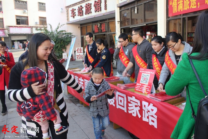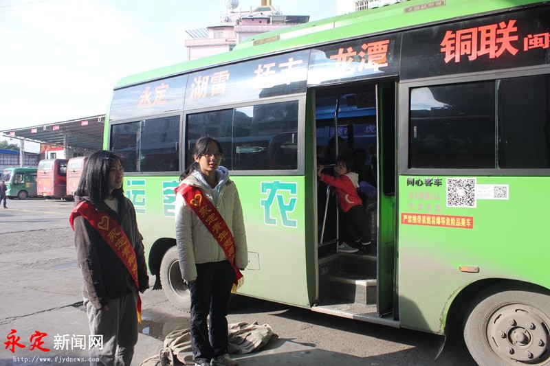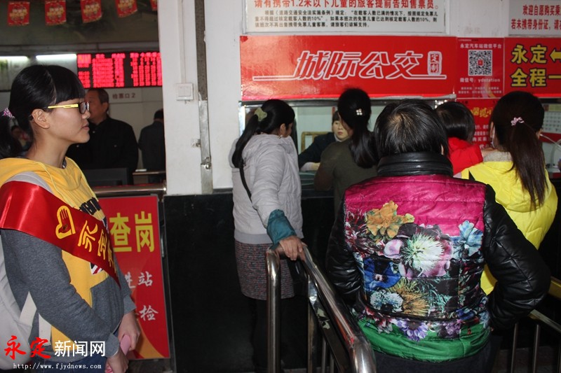 元月17日,记者在永定汽车站看到,一群大学生在开展“青春志愿行 温暖回家路”春运志愿服务活动,有的给往来旅客赠送春联,有的在安检口劝导旅客行李安检、有的在售票口帮忙询问、有的在公共汽车边扶老携幼,一张张笑脸温暖了旅客的回家路。