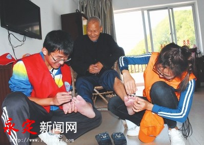10月 13日,龙岩市永定区城关中学40多名师生义工来到区光荣院,开展“敬老爱老助老”主题活动。师生们在光荣院打扫卫生,为老人提供剪指甲、捶背等服务,和老人一起包饺子、唠家常,喜迎重阳节。苏高龙 何晓春 摄