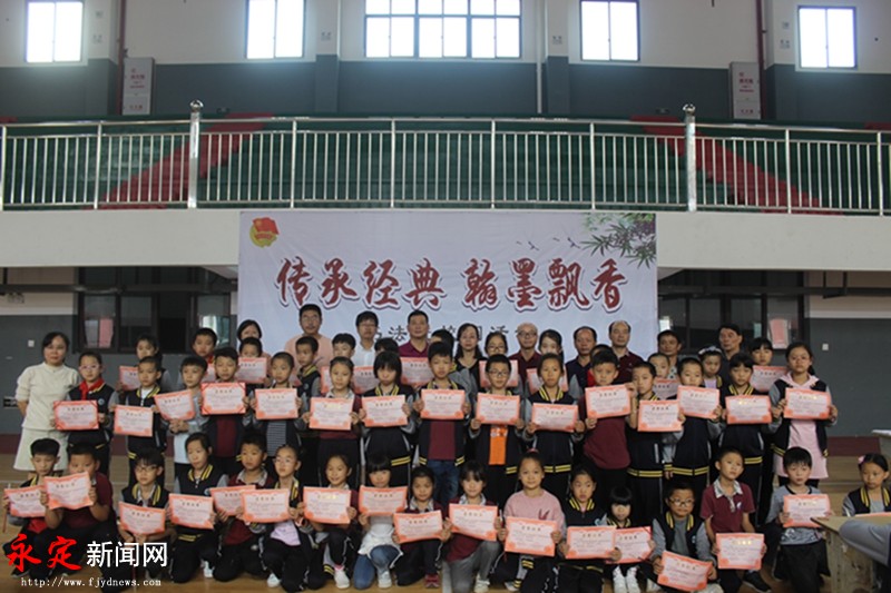 ![]() 比赛现场 ![]() 比赛学生正在认真书写 永定新闻网讯(胡莹亮)笔墨纸砚,传承经典文化;春夏秋冬,品读书香诗韵。10月26日上午,由永定团区委、永定区文体广新局主办的以“发扬国粹之光,传承书画风采”为主题的“传承经典·翰墨飘香”书法进校园活动在坎市彩金实验小学体育馆举行。活动以现场书法比赛、国学讲座的方式进行,吸引了120名学生踊跃参与。 比赛现场,小学生们都满怀激情,手握毛笔,屏气凝神,精心布局,用心书写每一个汉字。点横撇捺,有提有按,尽显笔锋,一个个美丽的汉字从学生们的笔尖流出来。活动现场气氛热烈,井然有序。 据悉,本次比赛为现场创作,组委会统一发放书写用具,创作时间为35分钟,创作内容需根据组委会给出的试题中选择。活动邀请了永定区文联、福建土楼书画院相关专家组成评委团进行认真、公平、公正的评选。比赛设置奖项4类共50人,其中一等奖1名,二等奖6名,三等奖12名,优秀奖31名。 ![]() 评委们经过探讨评选出获奖作品 ![]() 为一等奖获得者卢思宇颁奖 ![]() 获得奖项的学生们集体合影 |