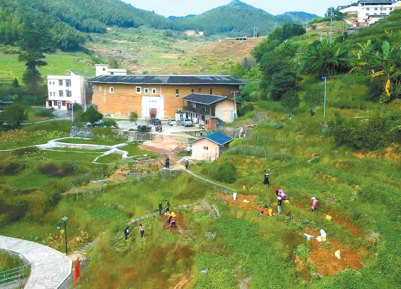土楼下的丰收场景